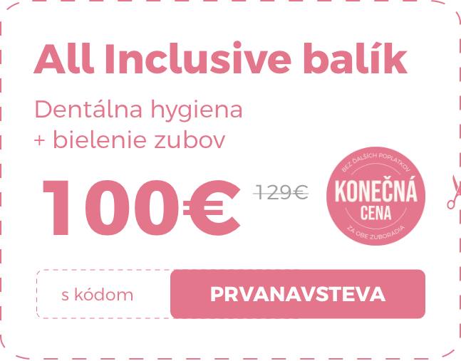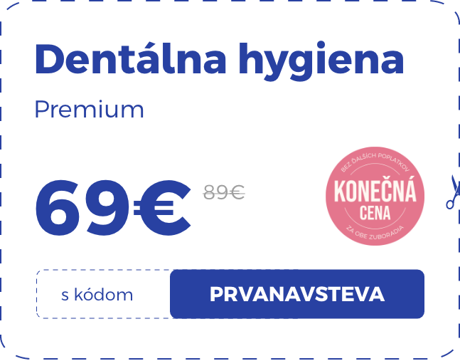 AKTUÁLNE ZĽAVY 💣 Dentálna hygiena Premium za 79€ (89€) s kódom DH79 | Dentálna hygiena + bielenie za 115€ (129€) s kódom ALL115 | Bielenie zubov Premium za 59€ (69€) s kódom BZ59